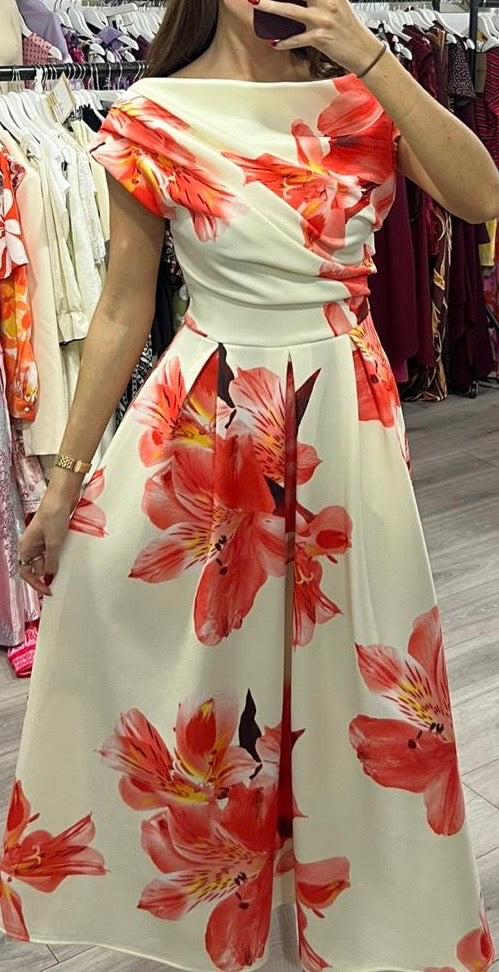 Brenda 3D Floral Bardot Bodycon Midi Dress