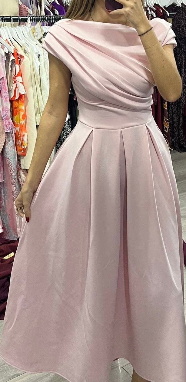 Betty Berry Velvet Asymmetric Neckline Skater Midi Dress With Pockets