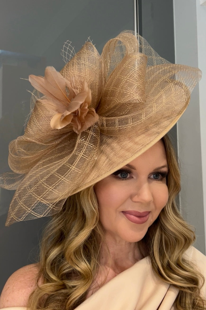Aurelia Nude Champagne Floral Bow Large Fascinator (PRE-ORDER TO SHIP IN MAY)